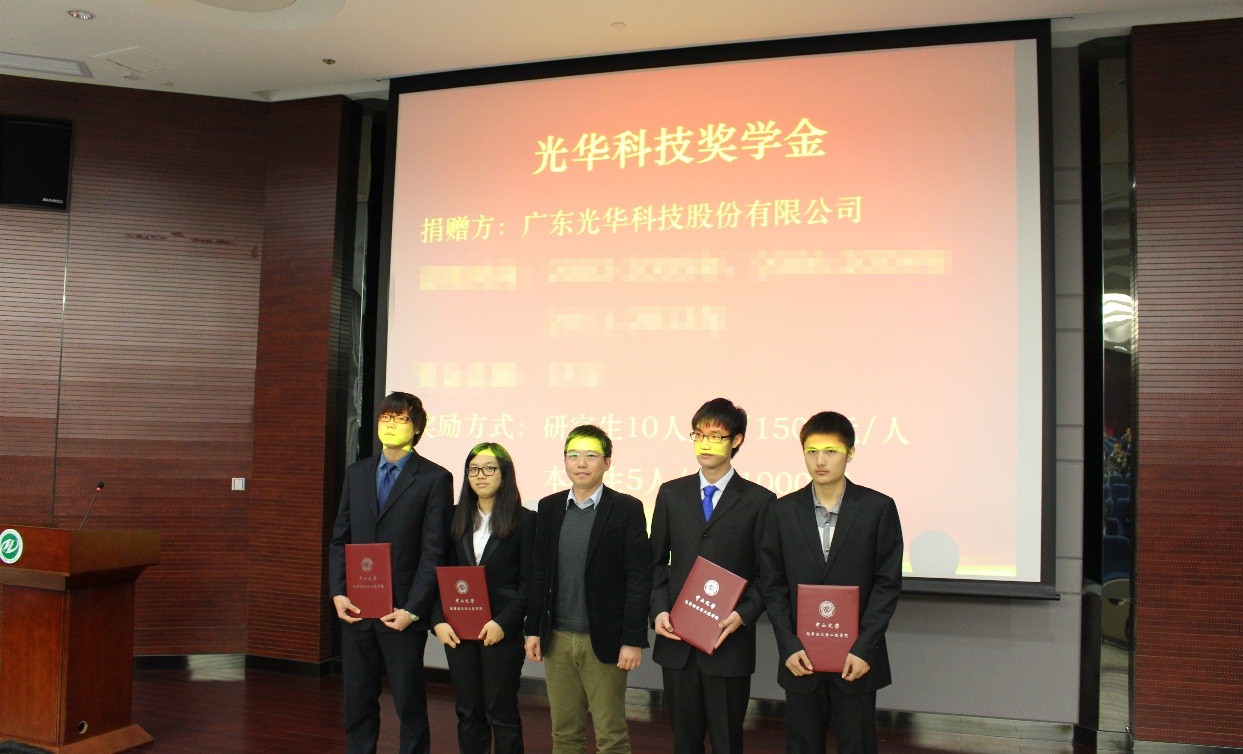 2013年12月26日,光華科技再次在中山大學化學工程與工藝學院的豐盛堂為2012-2013年優秀學子頒發獎學金。以下是頒發儀式相關照片: