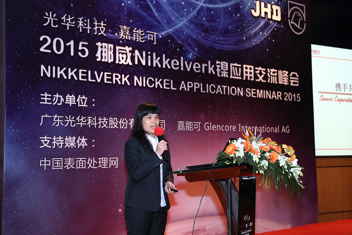 由光華科技和嘉能可聯合舉辦的2015挪威Nikkelverk鎳應用交流峰會于11月18日在上海世紀皇冠假日酒店隆重召開,旨在為上下游搭建一個面對面交流平臺。來自光華科技和嘉能可的技術及營銷代表做了關于基于電鍍鎳應用的配套產品及服務。