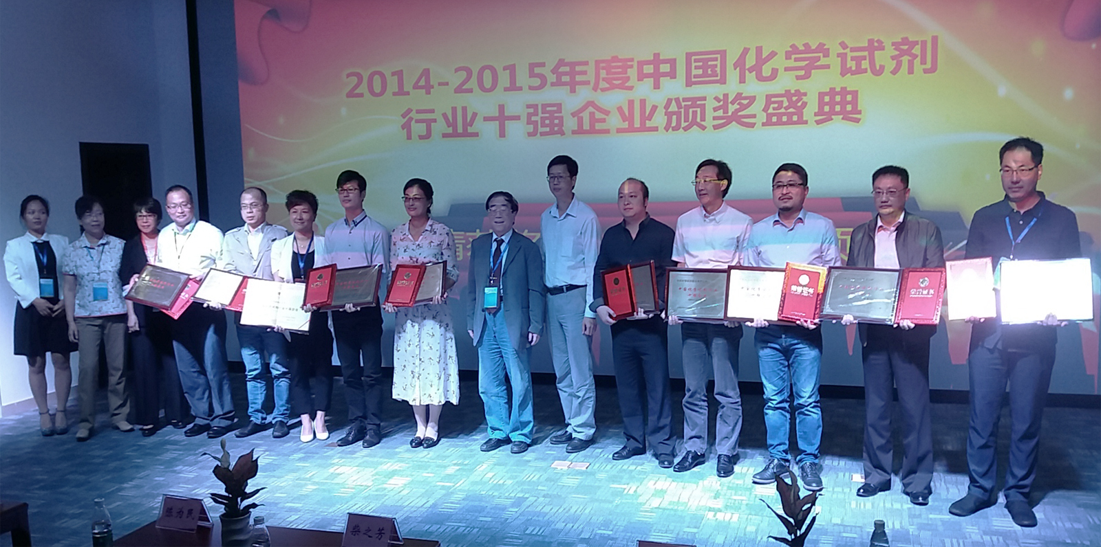 作為《化學試劑》期刊的企業編委,光華科技一同參與了本次交流會議,就會議相關內容與參會各方進行深入的研討。在會議過程中,先是由主辦及協辦各方嘉賓致辭。緊接著大會進入了2014-2015年度中國化學試劑的十強企業的發布和頒獎環節。在正式發布當選企業名單之前,大會特別指出,本次評定的十強企業都是在產品品種數量及市場表現、企業創新能力和可持續發展能力、企業年度銷售額和近兩年效益增長率等方面綜合實力排名行業前茅的佼佼者。隨后,會議一一發布當選企業名單,其中光華科技憑借較強的綜合實力榮譽當選。