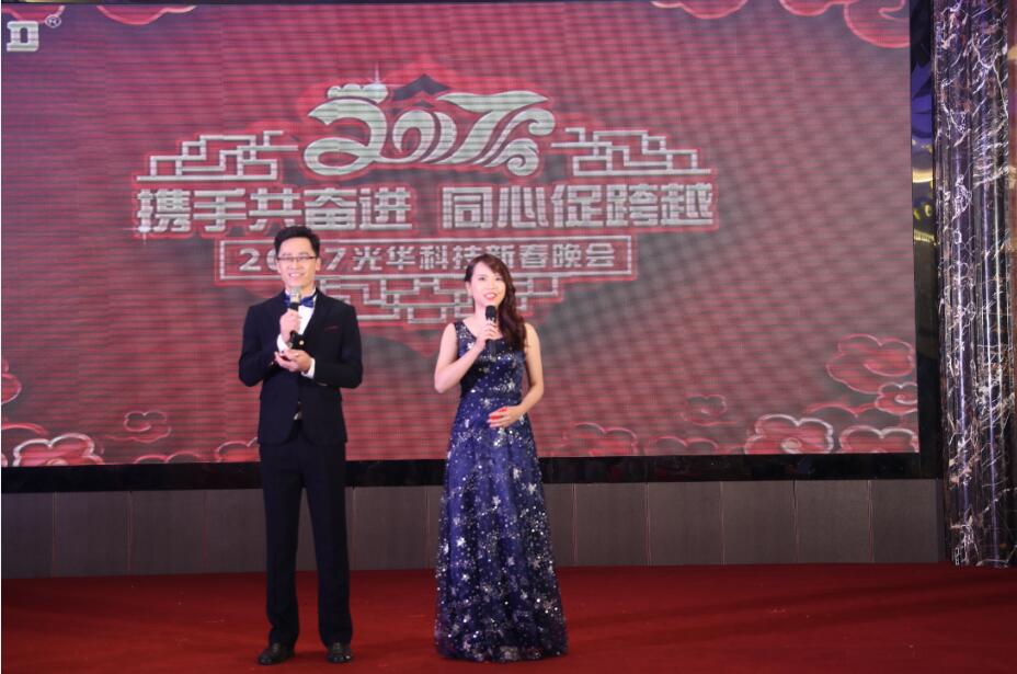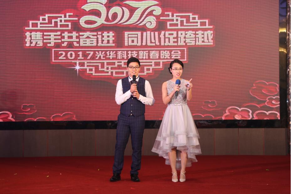 1月14日下午,光華科技營銷中心&東碩科技2017年新春晚會在廣州卡威爾酒店隆重舉行。公司領導、員工及嘉賓齊聚一堂, 共同回顧公司2016年走過的歷程和收獲,滿懷豪情期待2017的再度跨越!