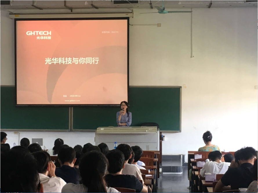 隨后,在廣東工業(yè)大學的輕工化工學院新生入學典禮上,光華科技優(yōu)秀管培生代表與新同學進行了“光華科技與你同行”的分享,展現了光華科技的企業(yè)風采,介紹了光華易購平臺為新同學未來學習中帶來的幫助。