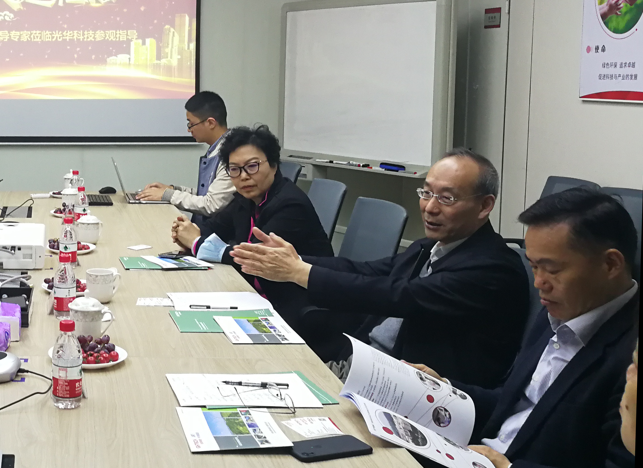 在隨后召開的座談會,調研組專家一行聽取了光華科技40年的創新發展歷程,以及在5G材料、新能源電池全生命周期綜合利用的業務專題匯報,并與在場高管、戰略規劃人員、政府項目申報管理負責人、技術攻堅帶頭人和市場中心負責人,圍繞企業的戰略規劃、產業政策解讀、前沿技術研究、產業鏈協同創新和可持續發展等議題展開深入的交流與討論。